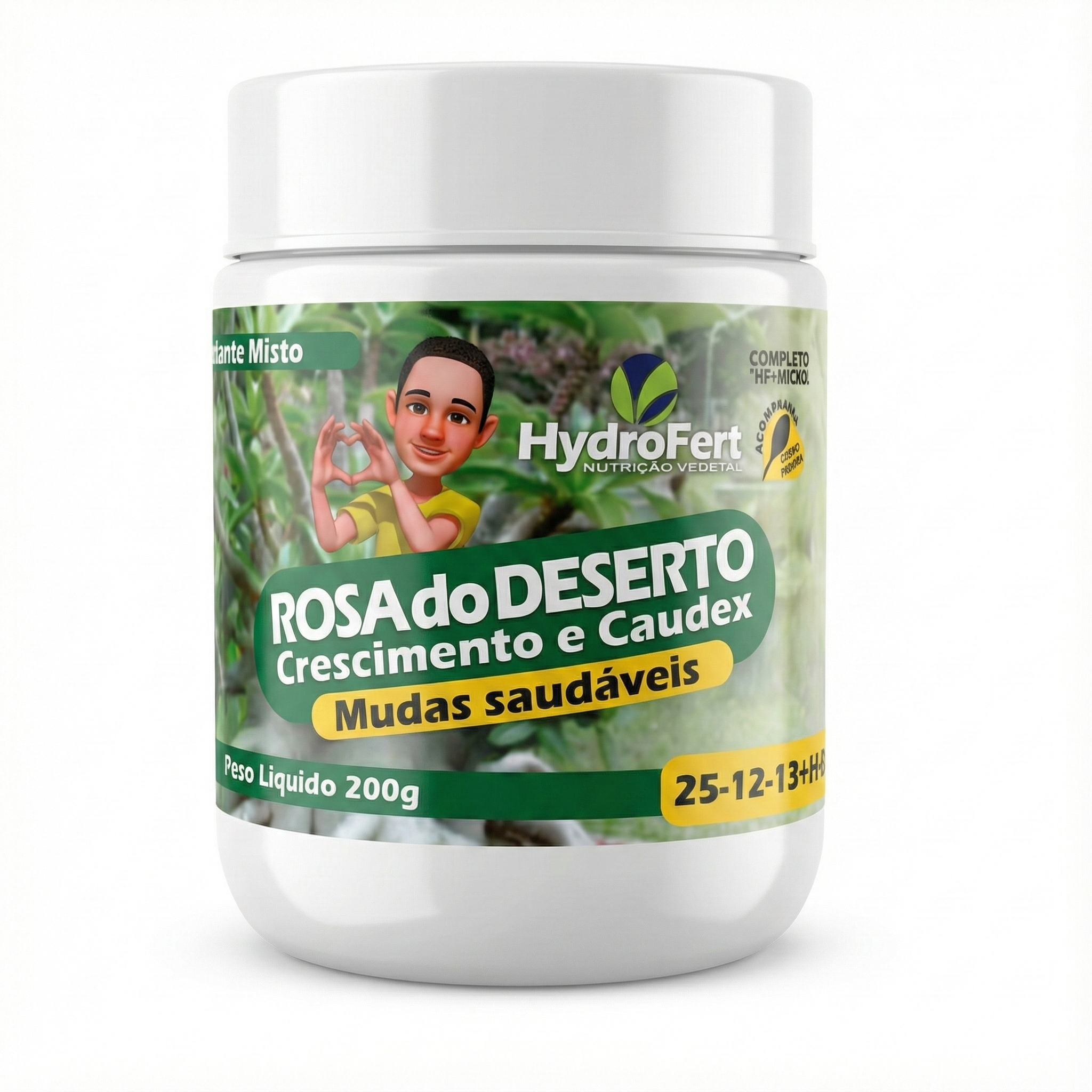 Indicado para uso em Rosas do Deserto com até um ano pós plantio, trazendo ótimos resultados aos amantes das rosas do deserto, com formulação rica em nitrogênio mais o magnésio, traz todos os nutrientes para que as mudas tenham um desenvolvimento saudável, fortalecendo o sistema foliar, caudex e raízes.
